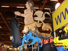 | Le 25 mai 2006. The Netherlands, May 2006 Dear diving friends, This is the 6th edition of the Dutch Diving Helmets newsletter. Just like the previous ones full with news. This time, the newsletter deals about the presence of the Dutch Diving Helmet on a helmet diving exposition in France and our DDH air trolley. On May 12th, 13th and 14th Dutch Diving Helmets went to St Gilles Croix de Vie, located on the coast of France. During these days, a wonderful exposition took place. Over 62 diving helmets were on display, together with several diving pumps, complete dressed helmet divers, cabinets with small items like torches and knives and a lot of diving posters and old diving prints. Added pictures give an overview of the exposition On the photo to the left, shows a Drager rebreather diver and on the back ground, you’ll see a Siebe Gorman diver. The photo on the right shows some diving helmets. Dutch Diving Helmets was invited to arrange the demonstrations. On Saturday, the guests of honour (and hereafter the other visitors) were invited to experience themselves how a helmet diver walks over the bottom of a diving pool. To do so, the organization chose for the DDH, first because its resemblance to the old diving helmets, and secondly because the easiness, comfort and safety. The most important guest was the mayor of St Gilles Croix de Vie, one of the main sponsors for the exhibition. Together with the deputy-mayor, they were the first to make an underwater walk. Off course, the local press was there to record it. Their first comment was that it was a great experience. After the guests of honor, almost 50 other visitors used the Dutch Diving helmet to play around at the bottom of the pool. It was a really nice event, with a lot of happy faces. On the photo to the left, the mayor gets the last minute instructions.The right photo shows the deputy-mayor, who is waiting for his underwater walk Beside visiting the show and demonstrate the Dutch Diving Helmet, there was also another “event”. During the first day of the exhibition, the DDH-Carmagnolle helmet was presented to the new owner Vincent and to the other collectors. This extraordinary helmet is originally a DDH helmet, but fitted with details from the famous French Carmagnolle atmospheric diving suit. The Carmagnolle suit is well known because of its 20 ports in the dome. Last, but not least, there is news about the DDH air trolley. For helmet diving, we need a lot of air. In previous times, this meant carrying a lot of diving tanks or carrying a bulky diving pump.Together with Hydrogom, DDH developed the DDH air trolley. The air trolley is a carrying device for three large diving tanks, up to 20 liter contents. There is also room for the diving hose. On the trolley, a manifold is mounted which will help reducing the high pressure to middle pressure.With the help of the DDH air trolley, it is very easy to drive your tanks around and transport them to almost every desired place. With a second reducer valve, you can even use two helmets on the same time. Information about Hydrogom: www.hydrogom.com Information about Monte Mare: www.indoortauchzentrum.de France websites about helmet diving www.piedslourds.com http://www.emotions-sous-marines.com/pjsommaire.htm France website about helmet diving paintings http://hobbystage.net/kanumera/liens/giorgi/ France Historical Diving Society www.hdsfrance.org The Dutch Diving Helmet DVD can be ordered by Linda Ferwerda, please dive to: www.duiken.tv In the next newsletter we will inform you about our Dive and Dine concept and about the visit to the Costa Brava. We added more news about the DDH-Carmagnolle and about the visit to St Gilles Croix de Vie on our website.Kind regards, Kees de Jonge Jan de Groot www.dutchdivinghelmets.com www.nautiekdiving.nl Tel (+) 31 492-511795 or (+) 31 624432023 Tel (+) 31 70-5114740In case you want to be removed from our mailing list, please let us know. |
