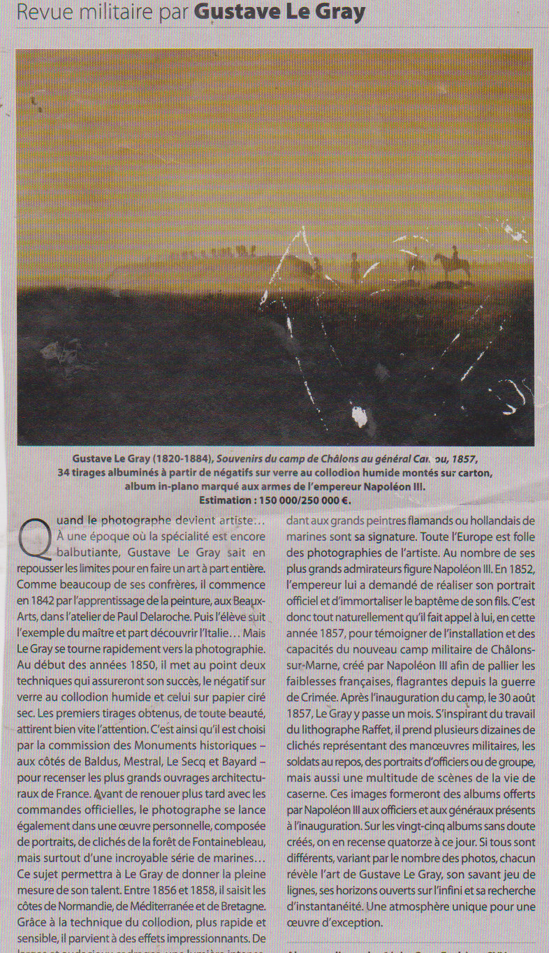 en pieces jointes Quelques ventes de l'incontournable gustave LE GRAY . !!!!!! !articles publiés dans la gazette Drouot .
