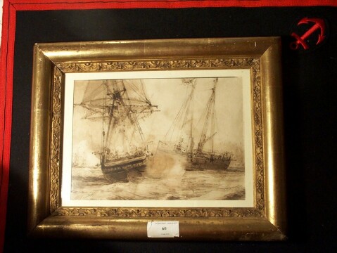 | Janvier 2005. Gravure lithographique "combat entre des vaisseaux anglais et français" encadrée 30x49cm 216 euros |