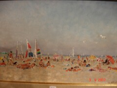 | le 28 octobre 2008. Huile sur toile de 46x55 cm "vacances à Trouville 1953" estimation 15.000 euros en vente ce jour