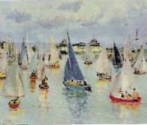 | le 16 avril 2008. cette petite huile sur toile de 16x22cm est estimée 12.000 euros "voiliers à Deauville" |