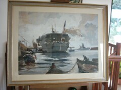 Dessin de "Morel-fatio"VAISSEAUX AU PORT encadré. prix: