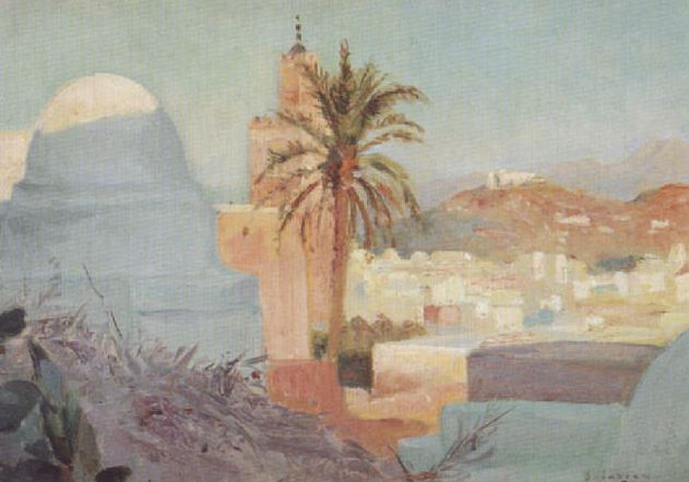 Maxime Noiré né en Moselle 1861 mort à Alger en 1927 a été nommé peintre officiel de la marine en 1905. mais il est surtout peintre de l'Algérie ,autodidacte il s'installe en Algérie en 1882 c'est donc un "peintre des colonies." Autodidacte, Maxime Noiré se rend en Algérie pour des raisons de santé et s'installe vers 1882 à Alger, où il acquiert une notoriété de peintre orientaliste. Voyageant dans le Sud algérien, où il découvre les oasis et les Aurès et après avoir eu un atelier à Alger au Frais-Vallon, au jardin d'Essai, et près de Bab El-Oued, il finit par s'installer à Bou-Saâda dont il contribue à la renommée dans le sillage et avec Étienne Dinet.En 1905, il est nommé peintre officiel de la Marine et des Colonies. Il est l'un des fondateurs de la Société des artistes algériens et orientalistes. Il participe à la création et la promotion du prix Abd-el-Tif et de la Villa du même nom. Il expose au Salon des artistes français.Parmi les œuvres de Maxime Noiré, on distingue Vue sur la Baie d'Alger depuis la Bouzaréa, Vue du Frais-Vallon près de Bab-el-Oued, Vue de Tipaza, et des panoramas ensoleillés du Sud de l'Algérie, commee les vues de Bou Saada, ou de l'oued Abiod dans les Aurès.Isabelle Eberhardt a dédié les Pleurs d'amandiers à Maxime Noiré, « le peintre des horizons en feu et des amandiers en pleurs »Maxime Noiré est le beau-père du peintre Paul Jouve.