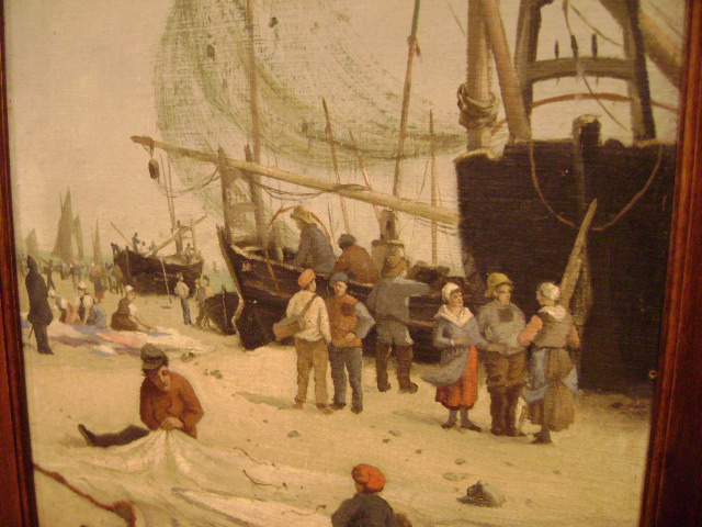 SEVELLEC Jim Eugène né en 1897 mort en 1971 ,nommé peintre officiel de la marine en 1936. Peintre de la Bretagne http://www.ina.fr/video/RXF02024507/quimper-rencontre-avec-le-peintre-jim-sevellec-video.html Eugène Sévellec grandit à Camaret-sur-Mer avec la colonie artistique de l'entourage de l'écrivain Saint-Pol-Roux. Très jeune, il dessine la vie du port. Sous l'influence de Saint-Pol-Roux, il part pour Paris, afin de suivre une formation artistique auprès de Louis-Marie Désiré-Lucas Lors de la Première Guerre mondiale, il est mobilisé en 1916 dans l'infanterie et il sert, entre autres, d'interprète auprès des soldats américains et écossais. C'est ainsi que ses compagnons lui donnent son prénom d'artiste « Jim », plus simple à prononcer que celui d'Eugène.Jim Sévellec collabore dès 1928 avec la manufacture Henriot, une faïencerie de Quimper En 1936 il est nommé peintre de la MarinePour le musée de la tour Tanguy il restitue le passé de la ville de Brest à travers des dioramas