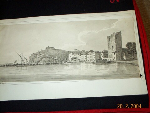 | le 15 Janvier 2008. Monsieur en vitrine d'un marchand de gravures de Paris j'ai vu cette estampe qui représente l'entrée du port de Marseille et "la Bonne mère" "Voeu des