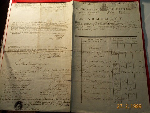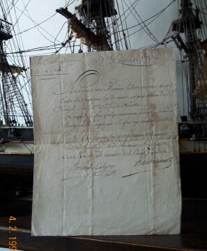 de capitaine au long cours Paris le 7 Nivose l'an sept de la République Prix 250 euros |