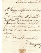 Desforger à L'Orient Paris 12/07/1735. Armement. Nous avons reçu monsieur ,la lettre que vous avez escrite à la compagnie le 5 décembre à votre arrivée du Sénégal sur le navire Le Duc de Noailles Lorsqu'il se fera quelqu'armement pour la seconde Navigation,la Compagnie se fera représenter votre lettre. Pour former tres parfaitement,monsieur votre très humble et tres obeissant serviteur les syndict et directeur de la