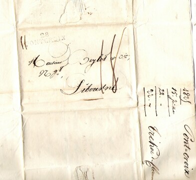 15 Juillet 1824. monsieur Beylot et cie à Libourne. Je vous confirme ma dernière du 29expiré vous remetant sous ce pli connaissement et factures de Froment chargé ... à bord de la goelette La Marie d'Audierne capitaine genoux Seigle chargé à bord