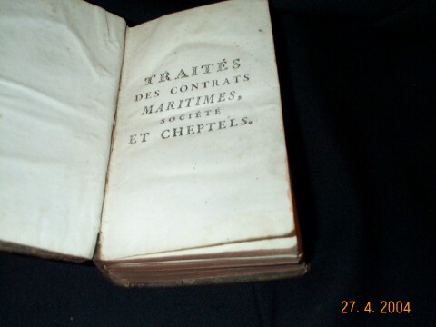 supplément au traité du contrat de louage ou traité des contrats de louage maritime Jean Debure père MDCCLXXIV. |