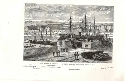 | la photographie immersion du bassin Napoléon III et préparatif du lancement du vaisseau "La Villes de Nantes" | |||||