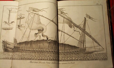 Comparaison d'une galére avec un vaisseau de " haut bord" .les gravures